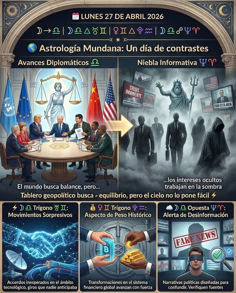 🌫️ ☽♎ Opuesta ♆♈: Alerta de desinformación. Las narrativas políticas diseñadas para confundir o distraer estarán activas. Verifiquen fuentes antes de dar por cierto lo que los grandes medios presentan hoy.