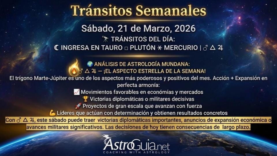 🌍 Mundialmente: Con ♂ △ ♃, este sábado puede traer victorias diplomáticas importantes, anuncios de expansión económica o avances militares significativos. Las decisiones de hoy tienen consecuencias de largo plazo.