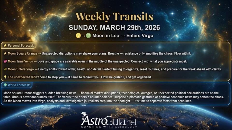 📅 SUNDAY, MARCH 29 ♌→♍ Moon in Leo → Enters Virgo