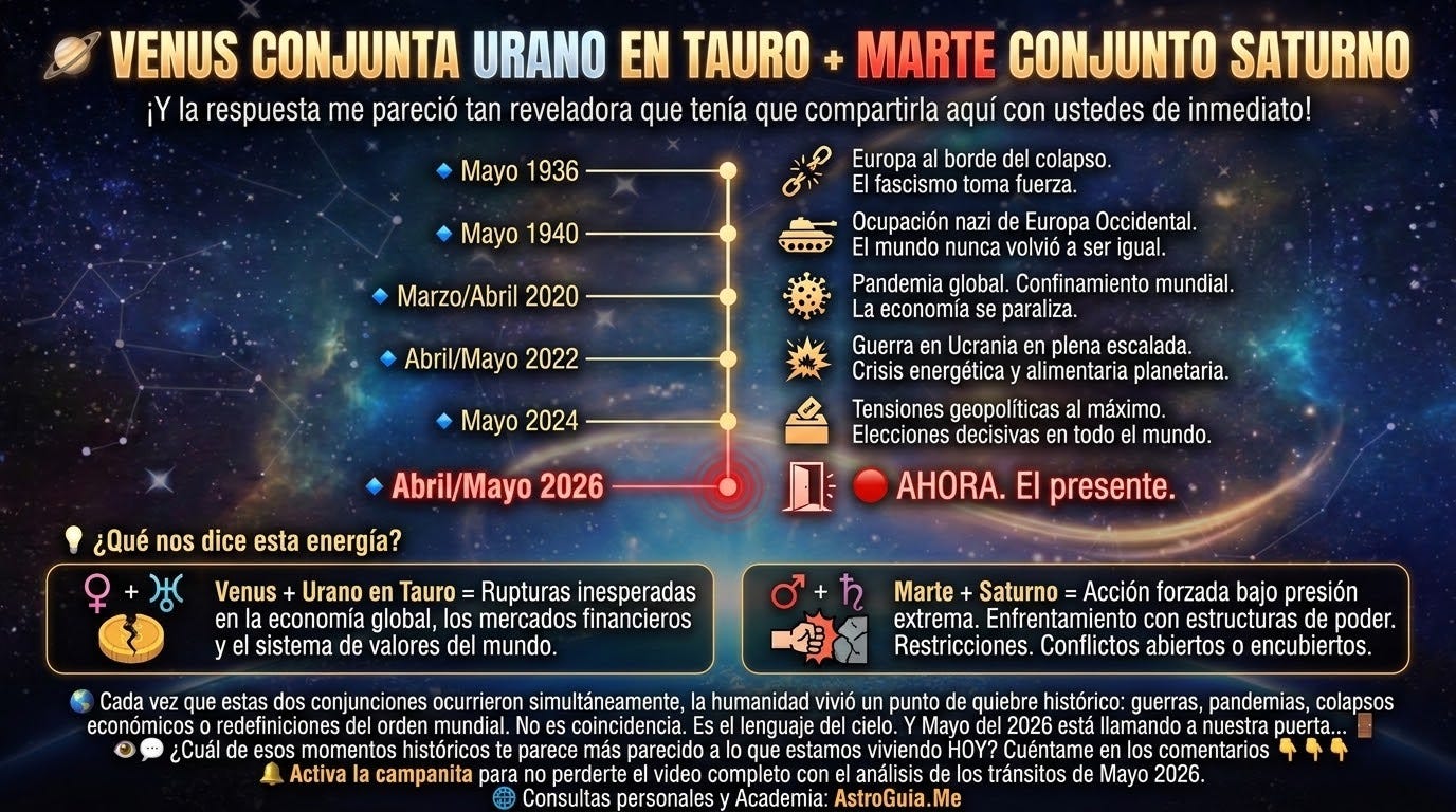 🌍 Cada vez que estas dos conjunciones ocurrieron simultáneamente, la humanidad vivió un punto de quiebre histórico: guerras, pandemias, colapsos económicos o redefiniciones del orden mundial. No es coincidencia. Es el lenguaje del cielo. Y Mayo del 2026 está llamando a nuestra puerta...